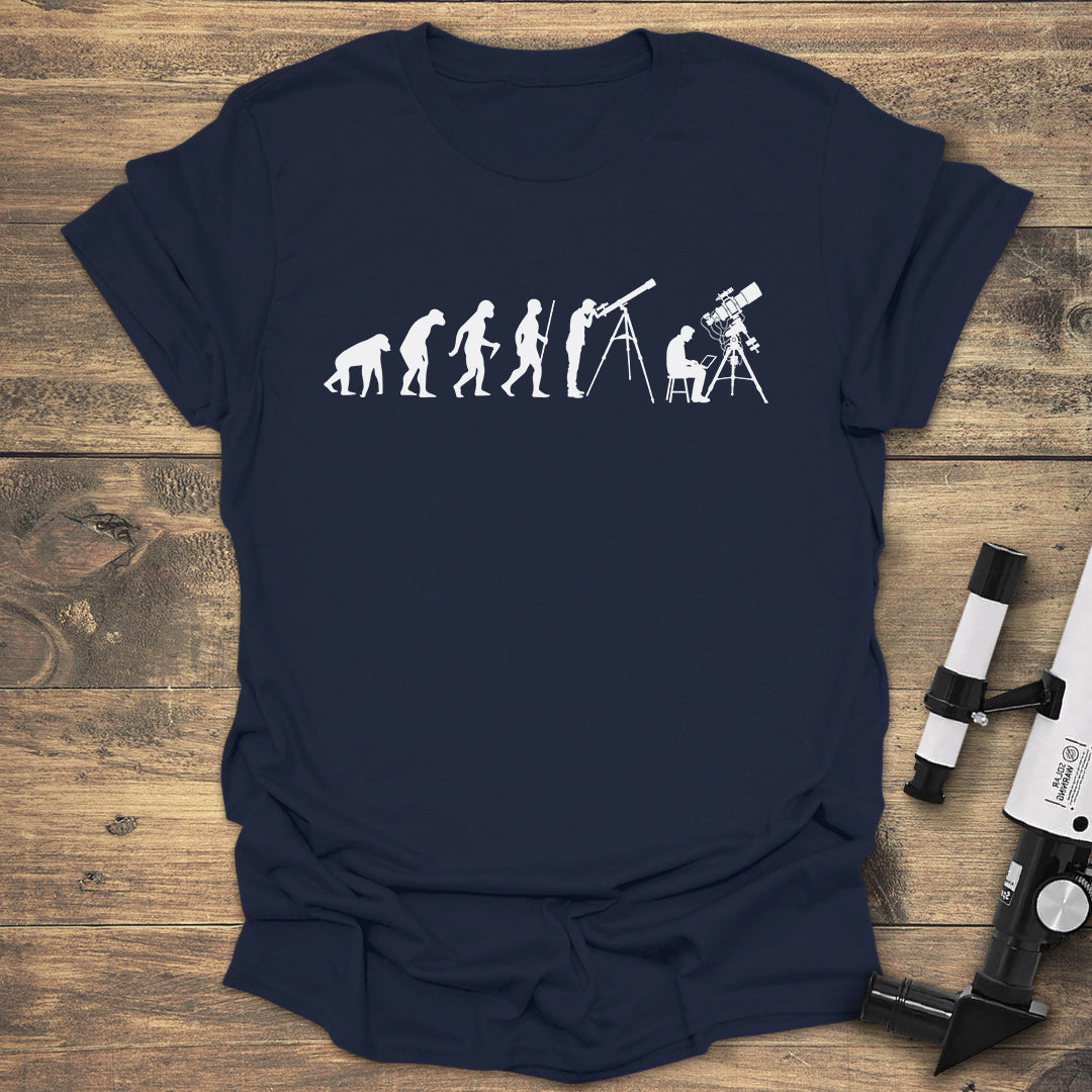 Show the progression of human curiosity with this unique "Evolution of Astronomy" T-shirt! Featuring the classic silhouette sequence, it culminates with a modern astronomer observing through a telescope and using a laptop for advanced stargazing. Perfect for science lovers, astronomers, and tech-savvy night sky enthusiasts.