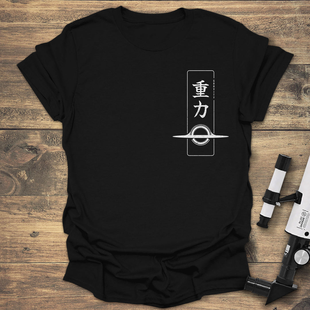 Explore the mysteries of the universe with this striking "Gravity" T-shirt! Featuring the word "GRAVITY" in both English and elegant Chinese characters, along with a powerful black hole graphic, it's perfect for science enthusiasts, space lovers, and fans of the cosmos.