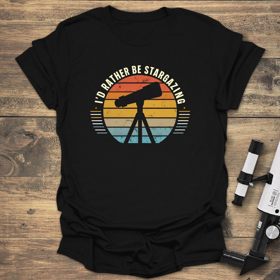 Escape to the stars with this I'd Rather Be Stargazing t-shirt! Featuring a vintage sunset design with a telescope silhouette, this retro astronomy tee is perfect for stargazers, space lovers, and astrophotography fans. Whether you enjoy night sky watching or simply love celestial aesthetics, this high-quality shirt is a must-have. Great gift for science geeks, astronomers, and outdoor adventurers!