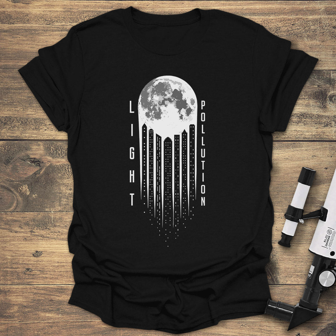 Raise awareness about light pollution with the Light Pollution T-Shirt, featuring a striking moon design. Perfect for astronomy advocates.