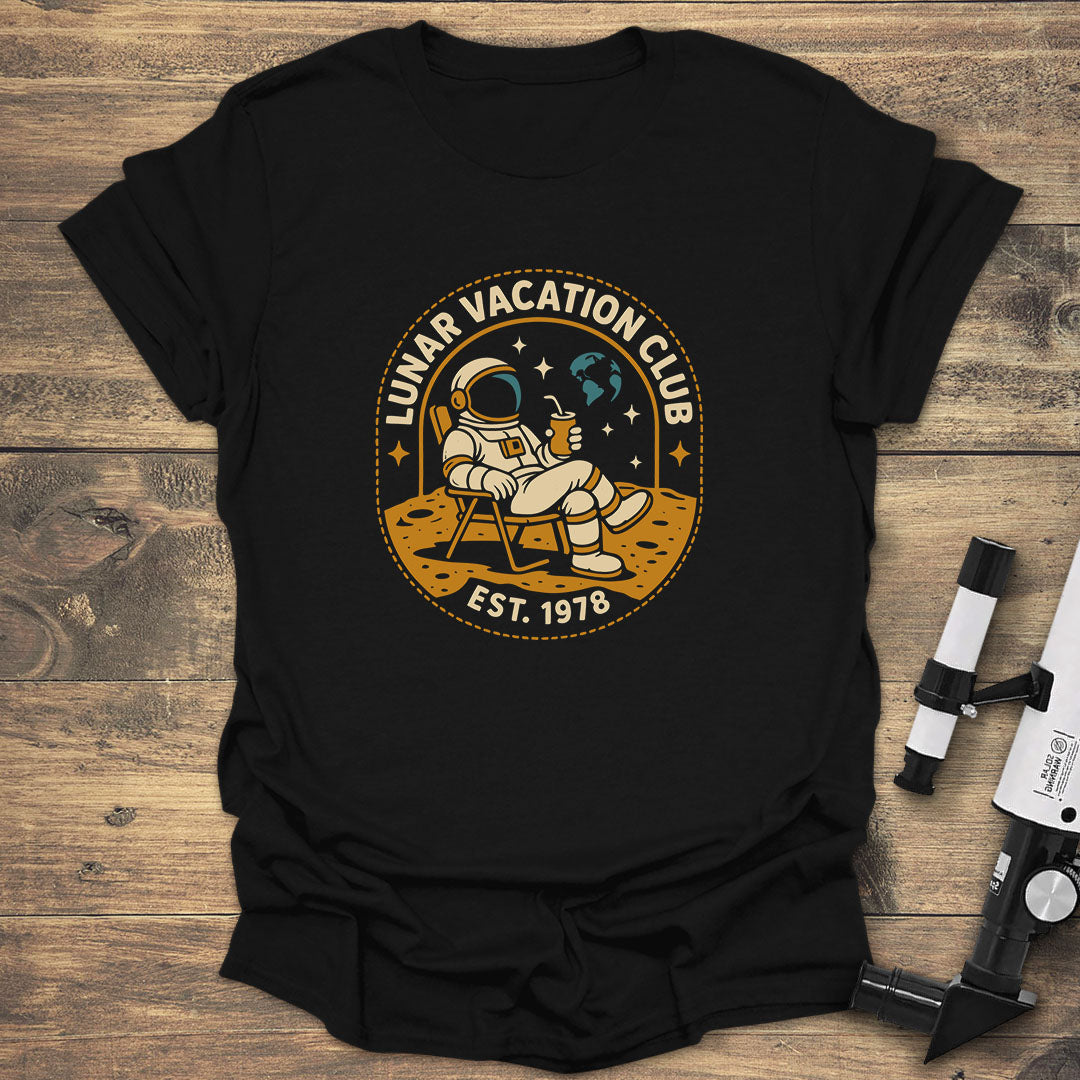 Kick back and relax in style with our Lunar Vacation Club Astronaut T-Shirt. Featuring a chilled astronaut lounging on the moon with Earth in the background, this retro-style design captures the ultimate cosmic getaway. A perfect tee for space enthusiasts, sci-fi fans, and anyone who dreams of lunar adventures.