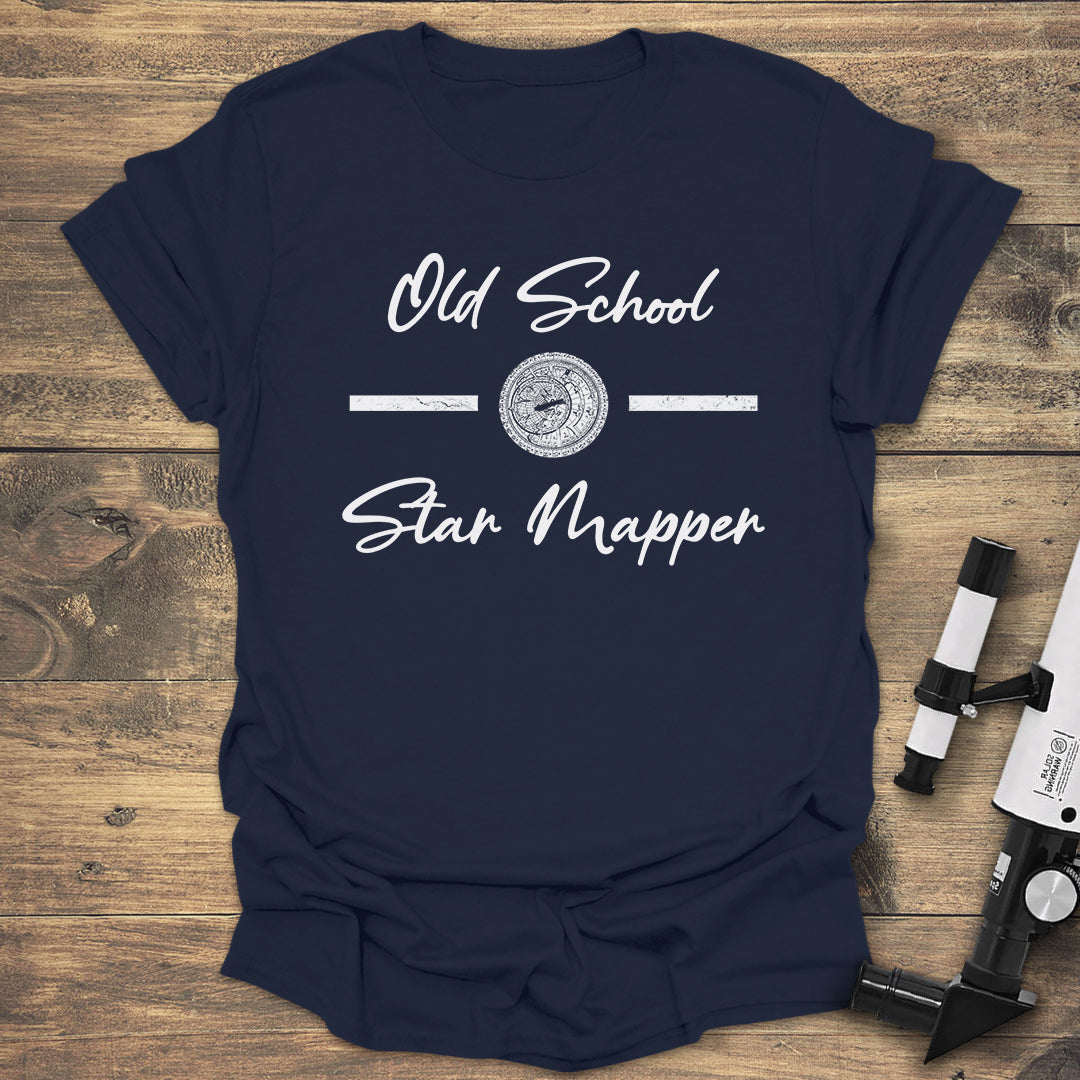 Embrace the classic art of celestial navigation with this "Old School Star Mapper" T-shirt! Featuring elegant script and a detailed astrolabe graphic, it's perfect for astronomers, history buffs, and anyone who appreciates the ancient tools of stargazing.